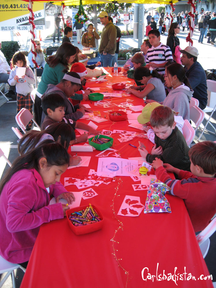 Tree-lighting guests were treated to free hot apple cider, coffee and cookies, as well as a Christmas card making station for the kids. Santa actually allowed strangers to sit on his lap while elves snapped Polaroid pictures for the kids.