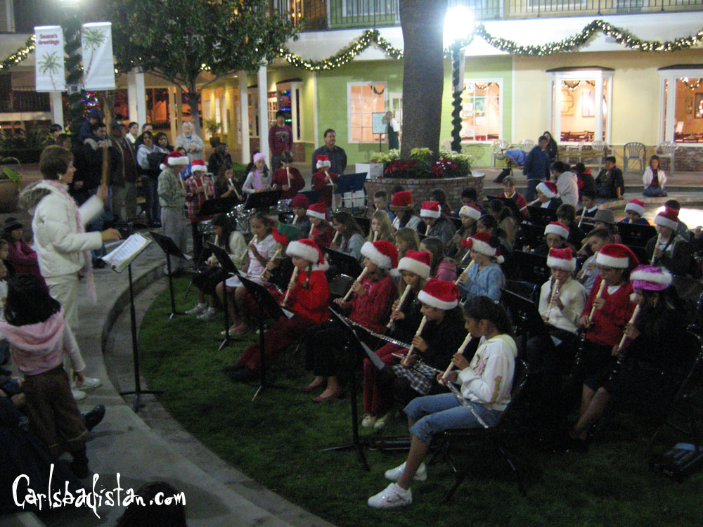 Tonight at the Village Faire Mall in the heart of Carlsbadistan, the Jefferson Elementary School fifth grade band electrified shoppers and parents with a slew of Christmas classics in their first public performance of the year. About half of the program consisted of tunes played on the recorder directed by Carlsbad Unified School District’s Teacher of the Year, Karen Stencil and the other half was symphonic band directed by Steve Ebner.