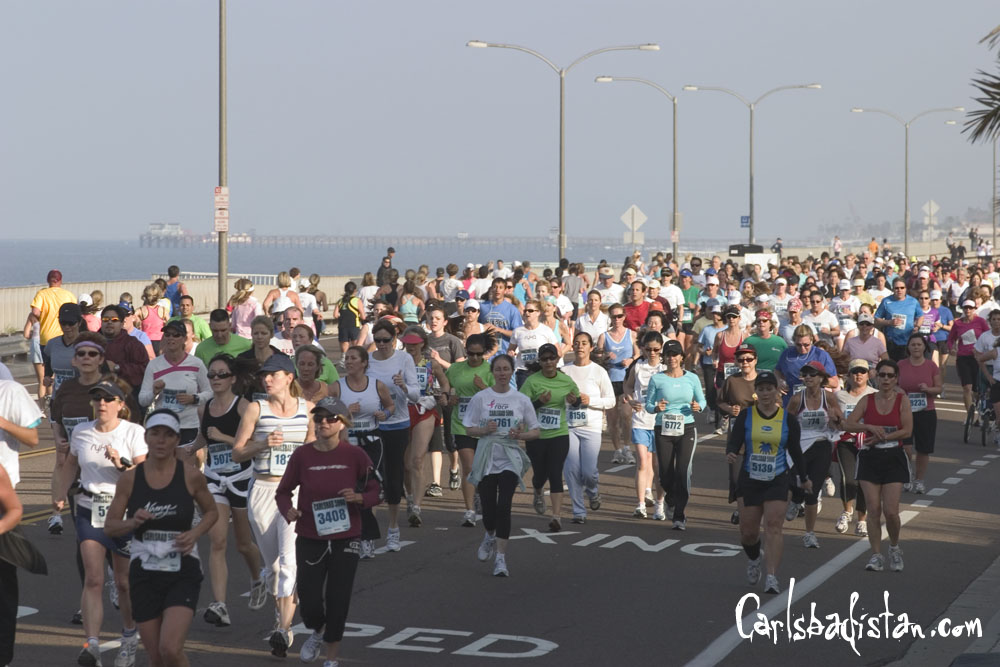 Master’s Women (40 and over) were the second to go this morning on a perfect Carlsbadistan day. Racers who worried yesterday about overcast and cloudy skies had nothing to fear today other than five kilometers of asphalt.