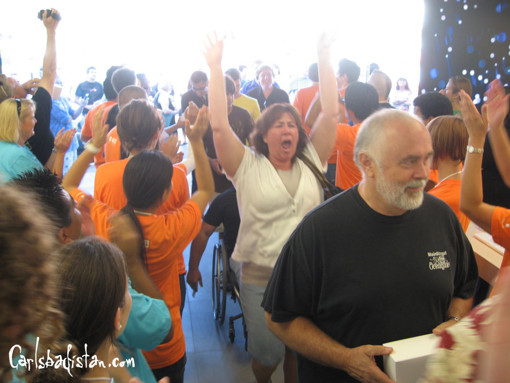 “I’ve been here since 4:20 AM,” she said from her comfortable chair before the doors opened. “I’m going to upgrade my iPhone to 3G and I waited until this store opened because I didn’t want to go to Fashion Valley.”