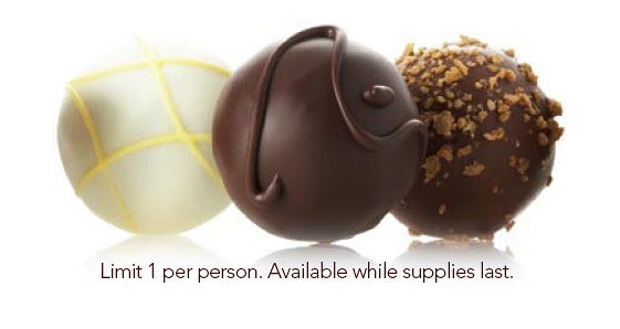 Normally, we’re not big Carlsbad Premium Outlet Mall shoppers, however, we are freestylers. So when it’s free we’re stylin’. And tomorrow November 20, 2008 from 1-3 PM Godiva Chocolatier will be handing out free truffles in celebration of Truffle Month. And yes, they are worth the drive. Chocolate up!