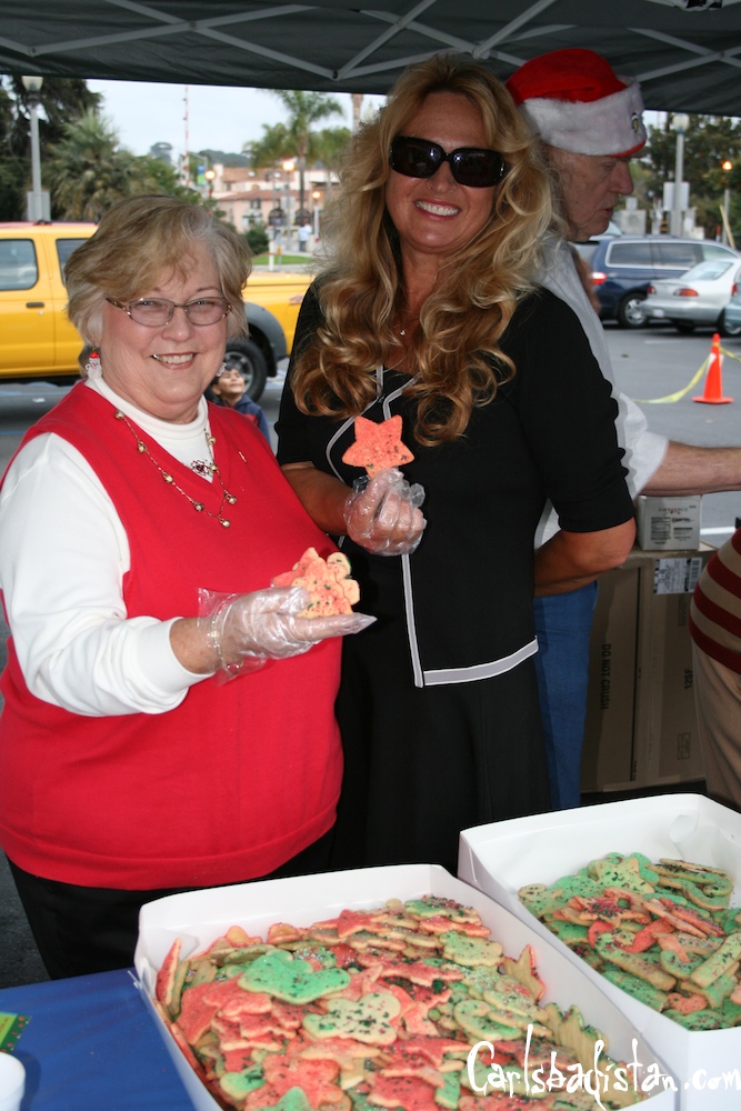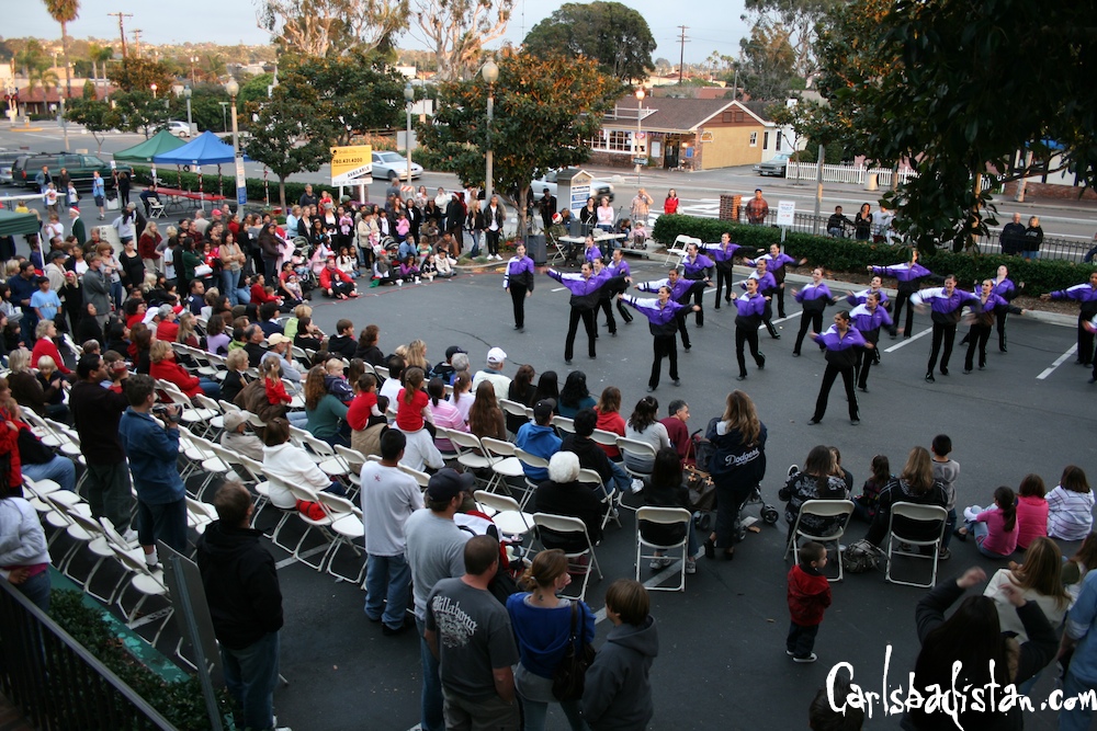 While Santa posted up with a few Rotary Elves in front of the tree for photographs with the kids, the festivities got underway on the makeshift stage in the parking lot in front of The UPS Store. The singing and dancing went strong almost all afternoon, and didn’t wind down until after the 4:30 dance performance from Carlsbad High School’s junior varsity Xcalibur and varsity Lancer Dancer squads.
