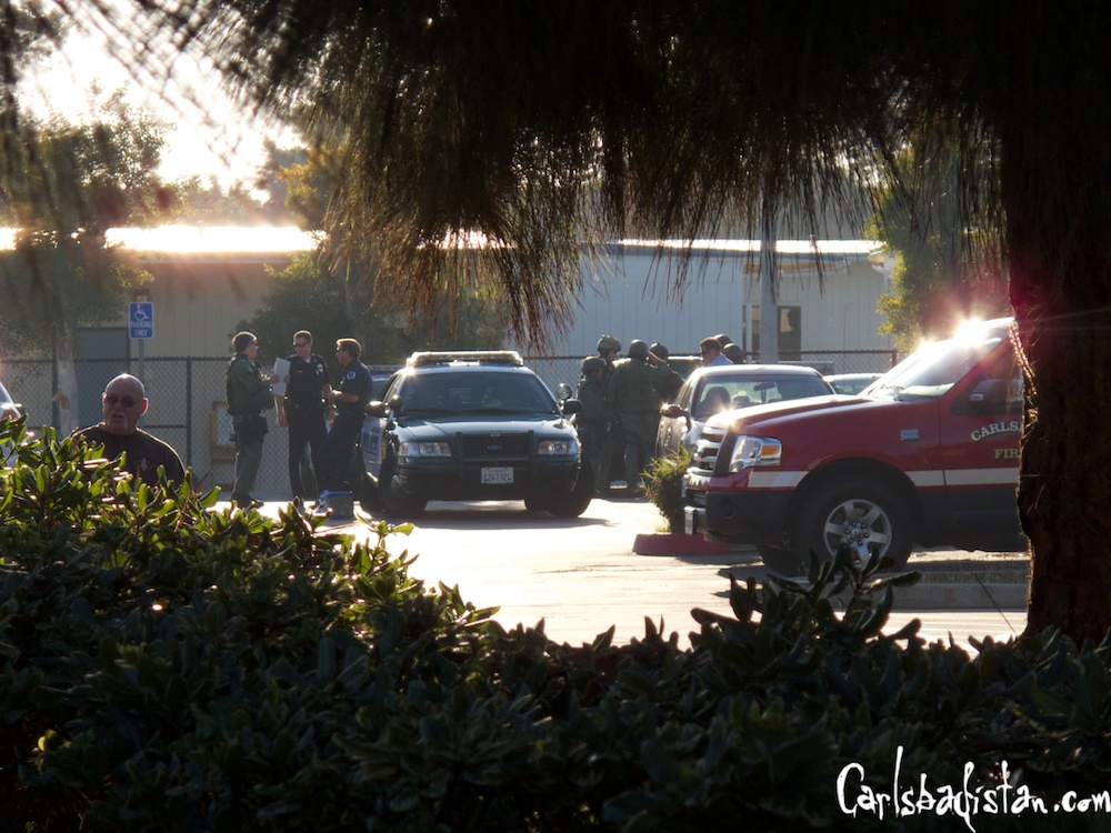 Village Apartment residents are being told that they could be barred from returning to their homes for up to an hour, maybe two. Carlsbad Police are on the scene as well as an field evidence technician from the Oceanside Police Department. Earlier seven Carlsbad Police Cars, two Oceanside Police Units, one City truck, and the San Diego County Sheriff’s Helicopter were on the scene.