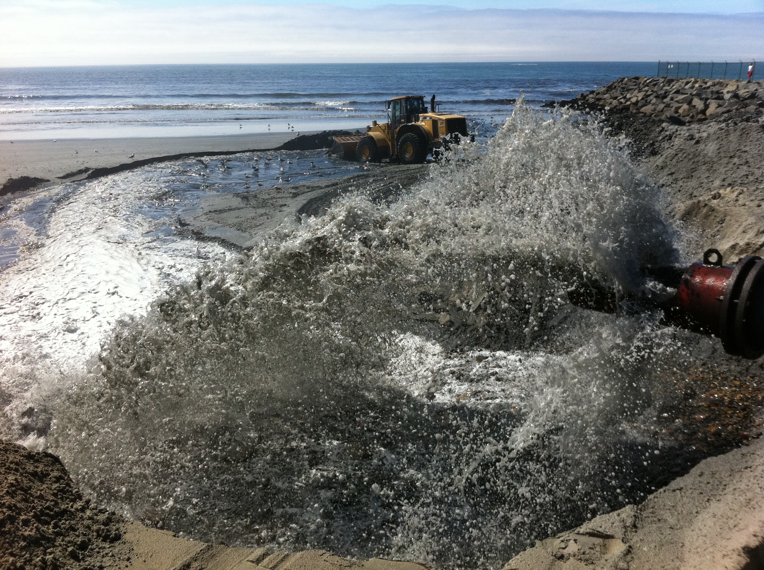 The Carlsbad Lagoon is being dredged to help support local industry (powerplant, etc.) and today the pipes were blowing loads of sand right out into one of North County’s best surf spots at Warm Waters. Anyone upset by this? Or is it all good?