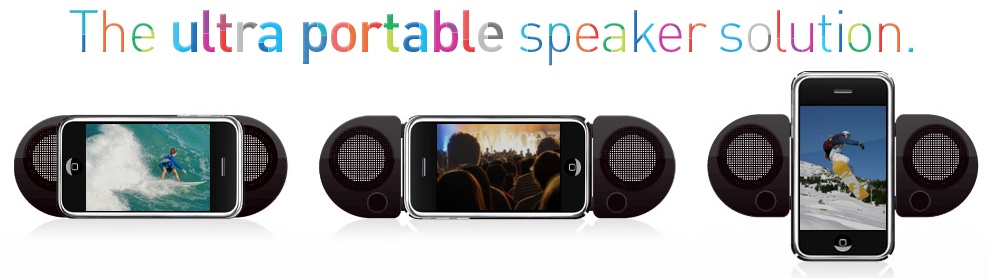 This amazing new speaker system features a set of speakers that fold-up and store conveniently behind the iPhone when they are not in use allowing for maximum portability. When the unit is stored (or hidden) it piggy-backs on the iPhone or iPod Touch making it portable enough to fit in your pocket for on-the-go multimedia. The unique style of the LiveSpeakR™ is visually stunning featuring bold design inspired by modern art. At launch the product will be available in black or white with more colors to come.