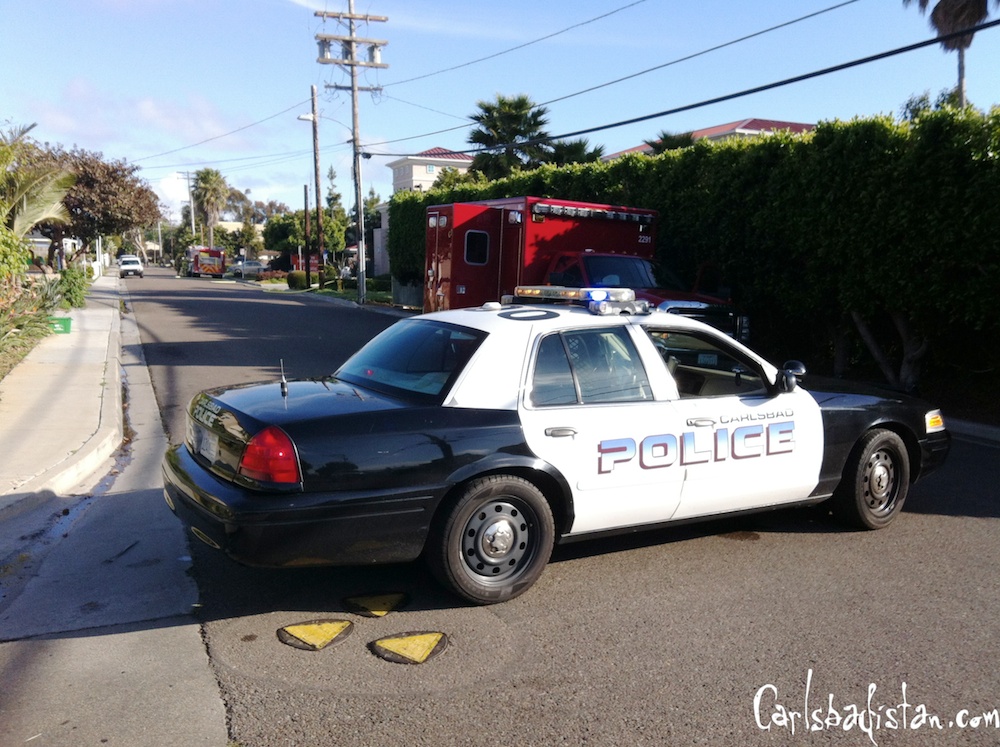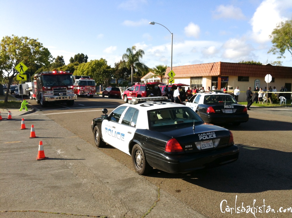 Carlsbad Fire’s hook and latter was on standby but did not appear to get any use.