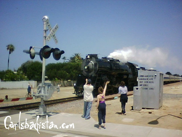 People began gathering at the Tamarack railroad crossing at 10:30 AM today as word spread through Carlsbadistan that an “old-time steam engine” was on it’s way down the track.