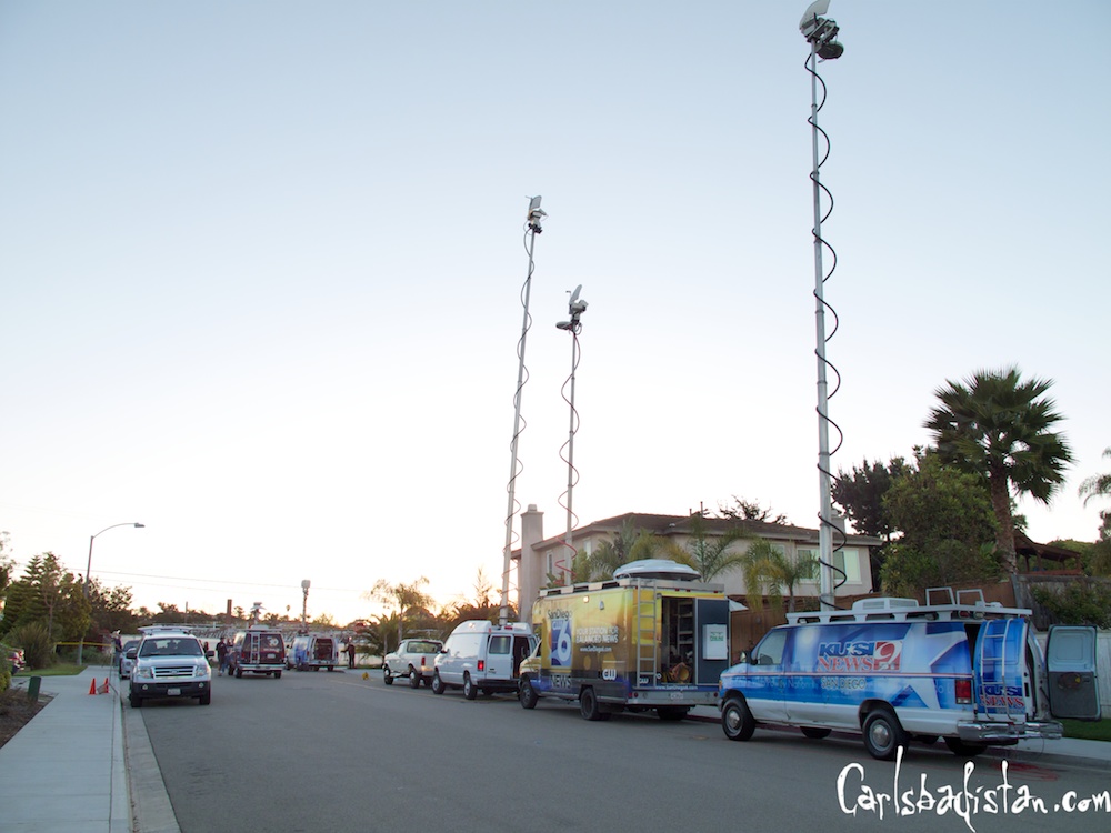 This morning at 7 AM the Carlsbad Police Crime Scene Unit was on location as were live satellite trucks from five San Diego news stations. Follow the jump for more photos.